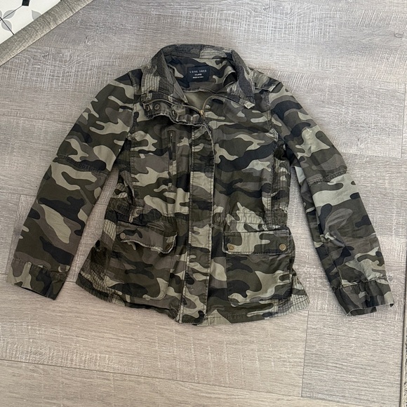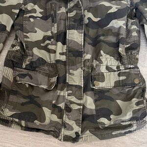 Trendy jacket with a camo design. Perfect for casual wear. Marked an XL but fits more like a medium.