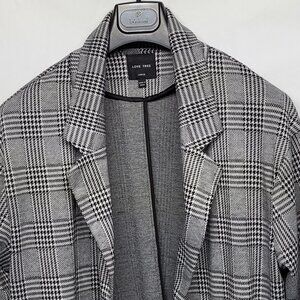 Love Tree Cardigan Sweater Tunic Womens Large Open Front Houndstooth Plaid