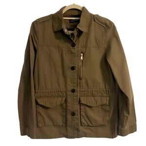 Love Tree Cargo Jacket Size Medium Dark Olive Green Cinched Waist Lightweight