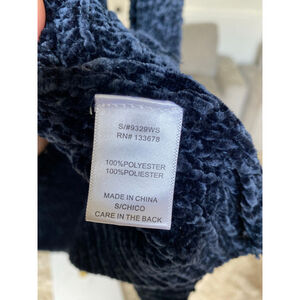 Cozy Love Tree chenille cardigan in deep navy blue with an open front and side pockets. Soft and plush textured knit, perfect for layering and adding a touch of luxe comfort to any outfit.