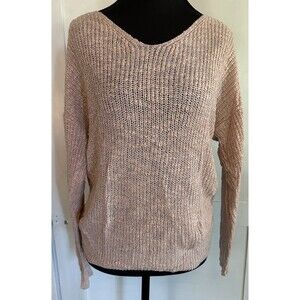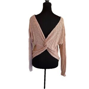 Love Tree Chic Flattering Peach Knit Tie Knot Back Pullover Sweater Womens Sz S