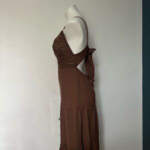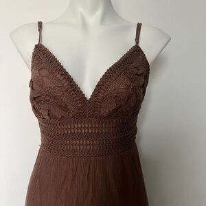 Love Tree Cocoa Crochet Lace Detail Boho Tiered Ruffle Dress