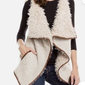 Love Tree Cream and Brown Faux Fur Vest Size L