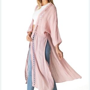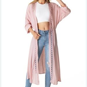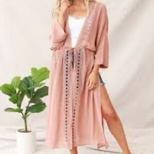 Love Tree Crochet Sheer Linen Cover Up Maxi Kimono S EUC