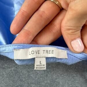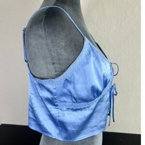 Love Tree- Crop Silky Lrg Blue front ties- spaghetti strap- baby doll preowned