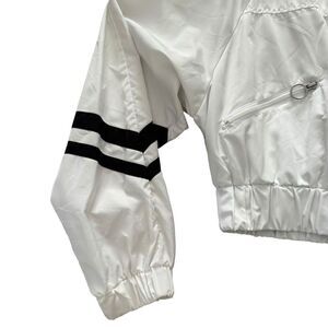 Love Tree Cropped Windbreaker Hoodie Jacket White With black Striped Small