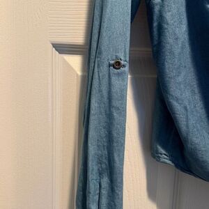 Love Tree Denim Button Up Tie Tencel Blue Shirt NWOT