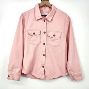 Love Tree Denim Womens Shacket Top Size L Pink Jean Button Front Casual Layering