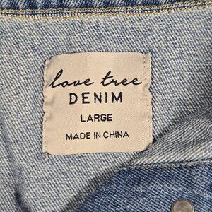 Love Tree Distressed Blue Denim Jacket Women’s Size L Ripped Casual Button-Up