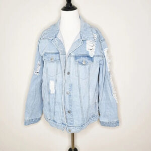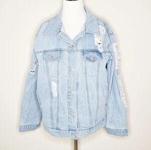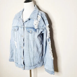 Love Tree Distressed Denim Jean Jacket L