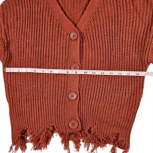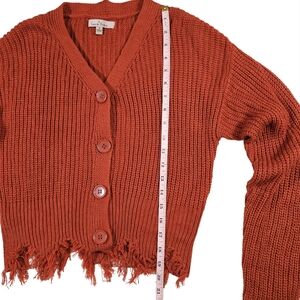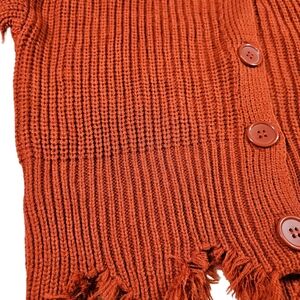 Love Tree Distressed V Neck Button Up Cropped Cardigan, Burnt Orange, Small