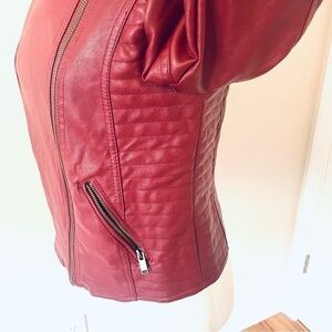 Love Tree Faux Leather Biker Jacket – Red Burgundy – Size Small