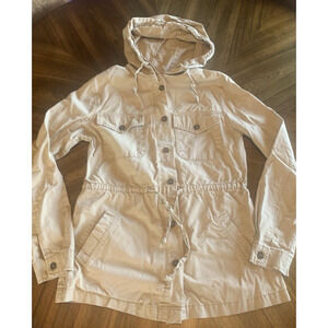 Love Tree Free People Canvas Cargo Coat Womens Small Cream Hooded Utility Jacket
