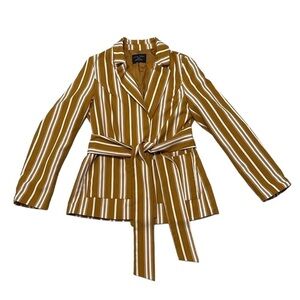 Love Tree Jacket Womens Small Mustard Yellow Striped Tie Collar