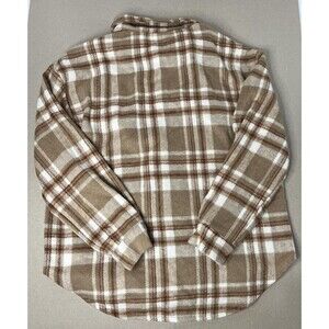 Love Tree Jacket Womens Small Tan Brown White Plaid Overshirt Shacket Fleece