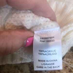 Love Tree white cable knit turtleneck sweater in size large. Made of 100% acrylic. Excellent condition with no flaws. P193A301