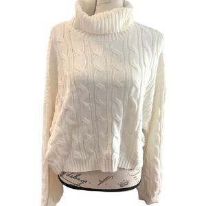 Love Tree Large White Cable Knit Turtleneck Sweater