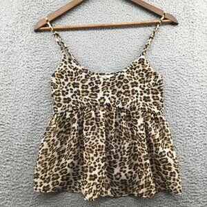 Love Tree Leopard Print Peplum Camisole Top Tan S
