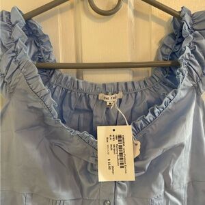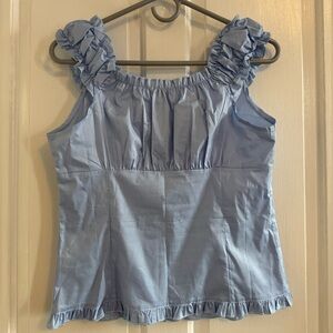 Charming ruffle top with button-down front. Soft fabric with delicate pleats. Perfect for casual outings or business casual activities.