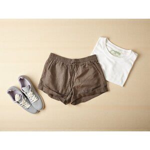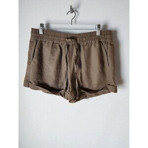 Love Tree Linen Blend Shorts Women’s L –Brown Casual Rolled Hem Drawstring Waist