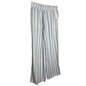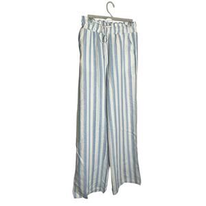 Love Tree Linen Blend Wide Leg Pants Elastic Waist Striped Blue White Sz L NWT