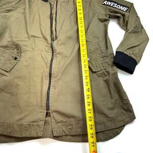 Love Tree Longline Bomber Jacket Women’s M Army Green Zip Front AWESOME Patch Utility Coat