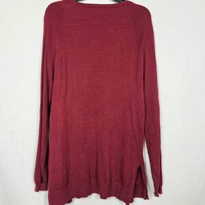 Love Tree long open-front cardigan in a rich maroon color. Lightweight knit with two front pockets and slouchy drape. Great for layering over tees and tanks. Pre-owned with light normal wear, no major flaws.