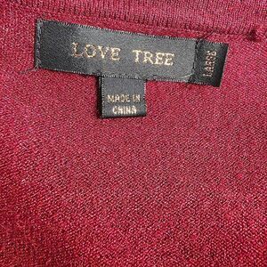 Love Tree Maroon Open Front Long Cardigan Large