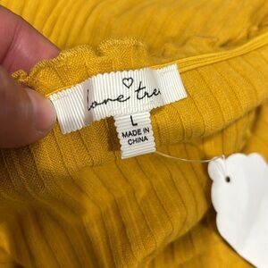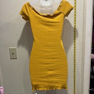 Chic mustard ribbed dress with button details. Short sleeves and flattering fit.
