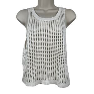 Love Tree Open Knit Top Blouse Sleeveless Cream Large Boho Festival Beach Hippie