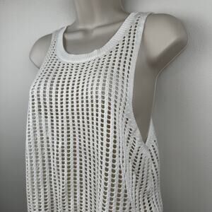 Love Tree Open Knit Top Blouse Mesh Sleeveless Cropped Cream Off White Large Boho Festival Beach Hippie