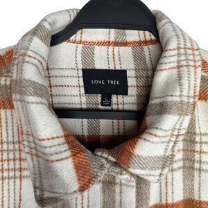 Love Tree Oversized Cozy Beige Orange Plaid Button-Up Shacket Jacket Sz L Gorpco