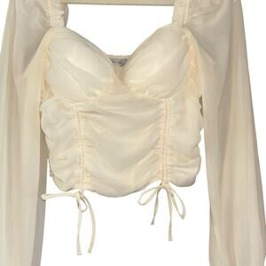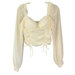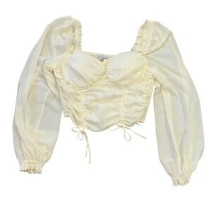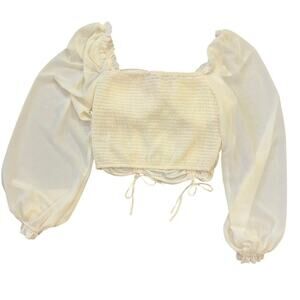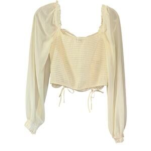 Love Tree Peasant Milkmaid Cottage Sheer Puff Sleeve Blouse Women’s M Fairy Top