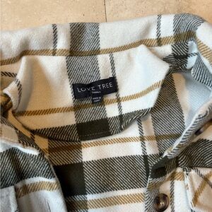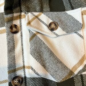 Stylish plaid button-down shacket. Features dual chest pockets. EUC only worn a few times. Perfect for layering.