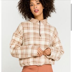 Love Tree Plaid Sherpa Half Zip Pullover M