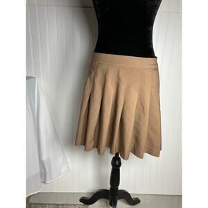 Love Tree Pleated Mini Skirt Womens Sz L Tan Barbie whimsy coquette academia