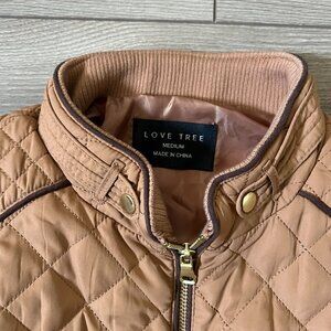Love Tree Puffer Vest Size Medium Womens Fitted Orange Diamond Quilted Full Zip