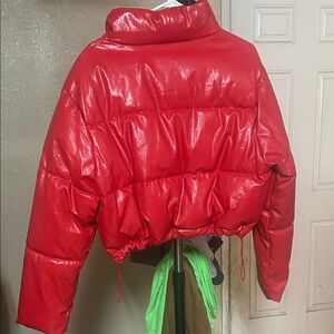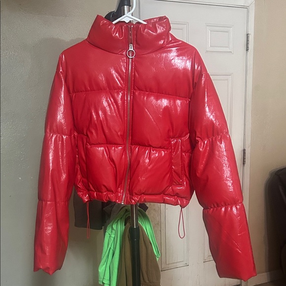 Stay warm and stylish with this vibrant red puffer jacket. Perfect for chilly days, it offers both comfort and fashion.