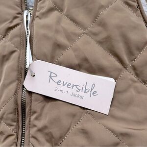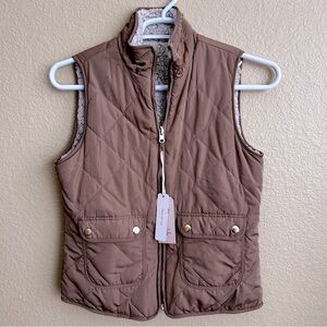 NWT. Women’s Love Tree reversible faux fur quilted vest. Features 2 front pockets with snap closure and full zip front closure. Other side is faux fur with 2 angled pockets.