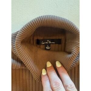 Love Tree Ribbed Mocha Brown Turtleneck Bodysuit Sz L Stretch Knit Snap Closure, great condition, measurements in pics, ships fast