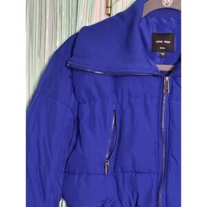 Love Tree Royal Blue Cropped Puffer Jacket, Pockets, Zip Closure, Polyester, S