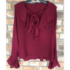 Love Tree Ruffled Front Top Medium
