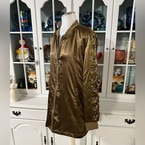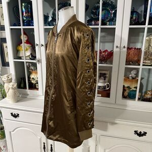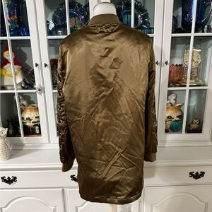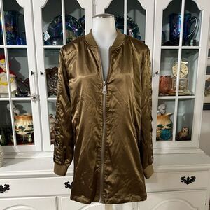 Love Tree Satin Jacket Size Medium Green-Brown Full Zip Front