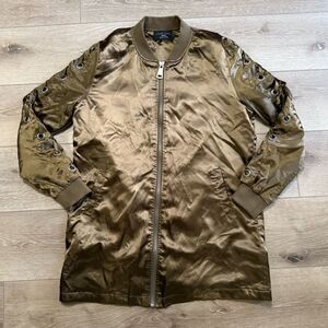 Love Tree Satin jacket Size medium Green Brown Full zip front