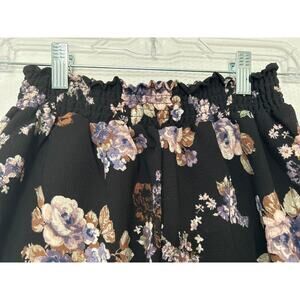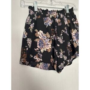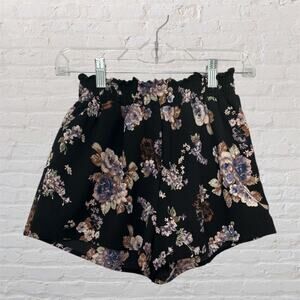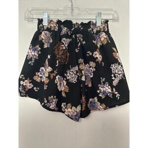 Love Tree Shorts Black Floral High Waist Paperbag Elastic Waist Casual Small