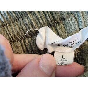 Good used condition Love Tree Los Angelws brand Shorts Womens. Linen Blend 55% linen 45% viscose.Sz Large . Green Pull On Cuffed legs Elastic Waist with drawstring. Slash pockets in front and slit button closure pockets in the back. No stains or holes; the cuffs unrolled in places and need to be ironed