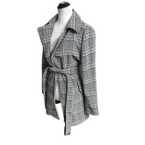 The Love Tree Size Large Plaid Longline PeaCoat is a stylish and versatile outerwear piece perfect for various occasions such as parties, casual outings, formal events, and business meetings. Made from polyester with a flannel fabric type, this pea coat features a classic plaid pattern in multicolor, giving it a preppy and sophisticated look. The long sleeve, belted closure, and tie detail add to its appeal, making it a must-have for the winter, fall, and spring seasons. Perfect for women looking for a regular fit and a fashionable style.