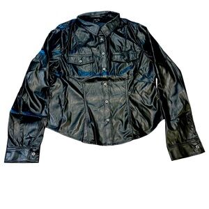 Love Tree Sleek Button Down Top Size Large Black Faux Leather Collared Neckline