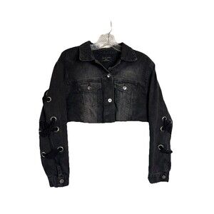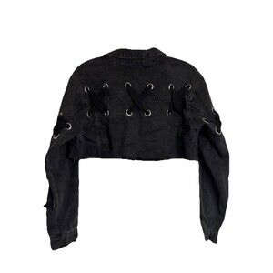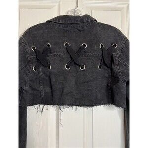 Love Tree Small Black Cropped Lace-Up Jean Jacket Raw Hem