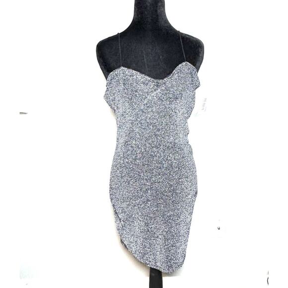 Love Tree Spaghetti Strap Bodycon Mini Dress Sparkle Black Silver- Size Large